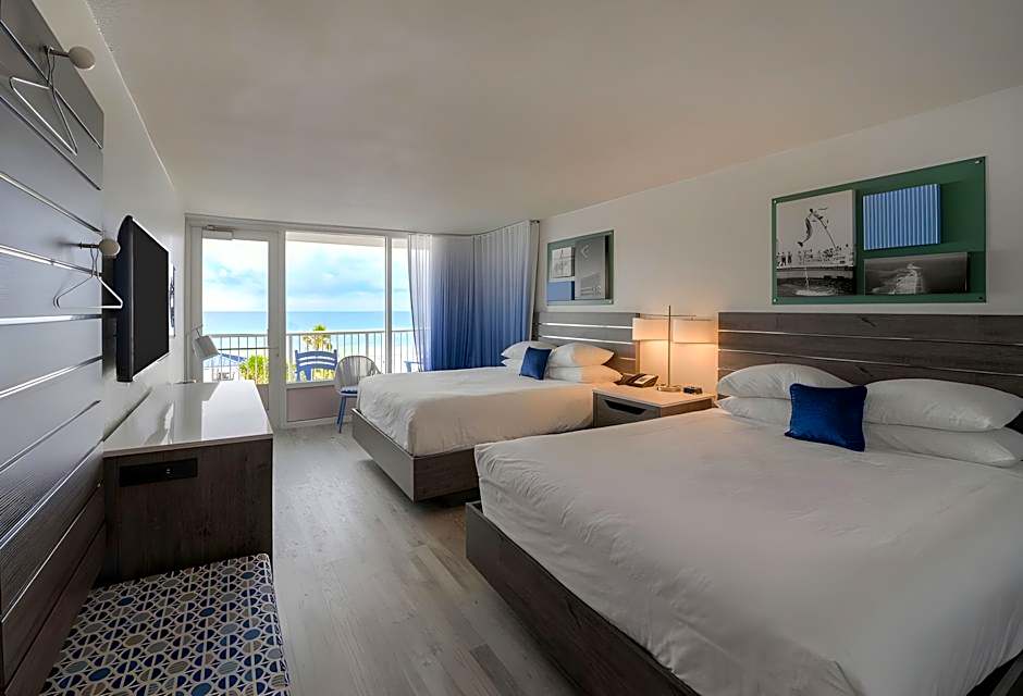 Gulf View Double Queen Beds is 463 square feet and includes 2 queen-size beds 150-154 width plus balcony, desk, cable tv, hairdryer, tea and coffee making facilities , ironing set, and safe and is Wheelchair-accessible.
